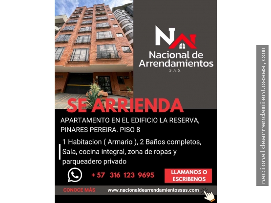 SE RENTA APARTAMNETO EN EDIFICIO LA RESERVA PINARES PEREIRA